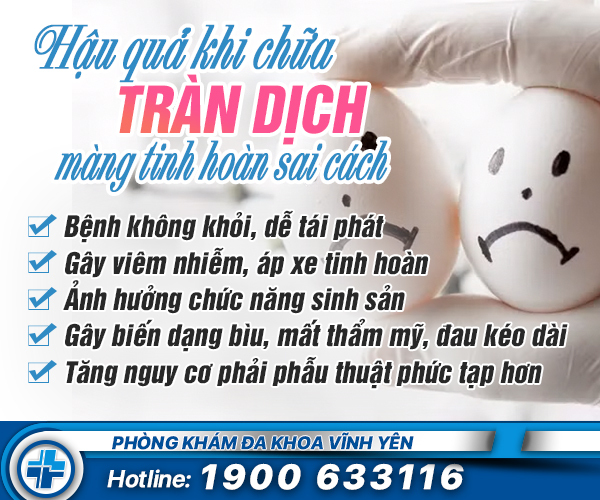 Bác sĩ chuyên nam khoa cho biết bệnh tràn dịch màng tinh hoàn không thể xem nhẹ. Nam giới cũng có thể phải đối mặt với một số hậu quả khi chữa tràn dịch màng tinh hoàn sai cách: