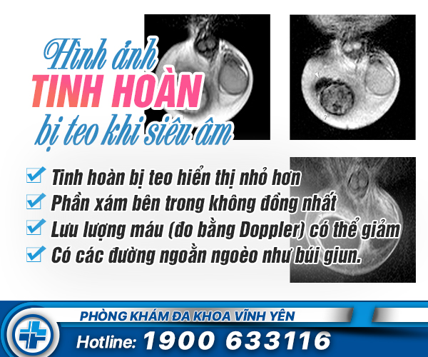- Tinh hoàn bị teo hiển thị nhỏ hơn, kích thước giảm đáng kể.
