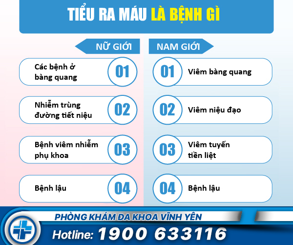 Một số bệnh gây tình trạng tiểu ra máu thường gặp như: