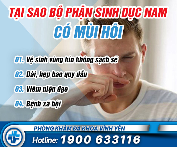 Bộ phận sinh dục nam có mùi hôi là hiện tượng phổ biến. Nguyên nhân có thể do vệ sinh kém, bựa sinh dục nhưng cũng có thể do đang bị viêm nhiễm. Cùng bác sĩ chuyên nam khoa tại Phòng khám đa khoa Vĩnh...