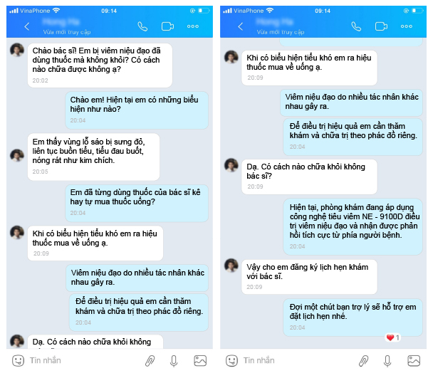 Chuyên khoa tiết niệu phòng khám đa khoa Vĩnh Yên đã tiếp nhận và điều trị thành công cho nhiều trường hợp bị mắc bệnh viêm đường tiết niệu. Nhận được phản hồi tích cực từ phía bệnh nhân: