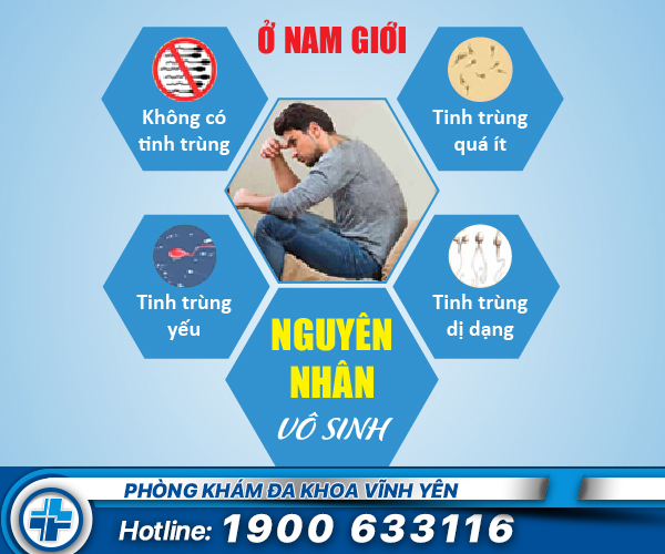 Theo các bác sĩ chuyên khoa tại Phòng khám đa khoa Vĩnh Yên, nguyên nhân gây vô sinh ở nam giới khá đa dạng. Phổ biến là do: