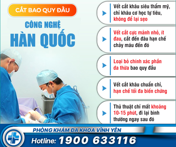 Bác sĩ sử dụng công nghệ thẩm mỹ tiến tiến xác định vùng da bao quy đầu bị thừa, bị chít hẹp, sau đó dùng công nghệ Hàn Quốc cắt bỏ nhanh và khâu vết thương bằng chỉ tự tiêu. Giúp loại bỏ bao quy đầu dài và hẹp hiệu quả.