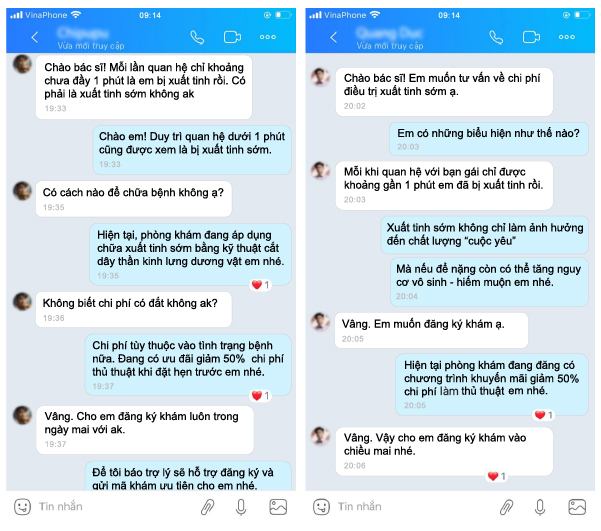 Chuyên khoa nam học phòng khám đa khoa Vĩnh Yên đã tiếp nhận và điều trị thành công cho nhiều trường hợp bị mắc bệnh xuất tinh sớm. Nhận được phản hồi tích cực từ phía bệnh nhân: